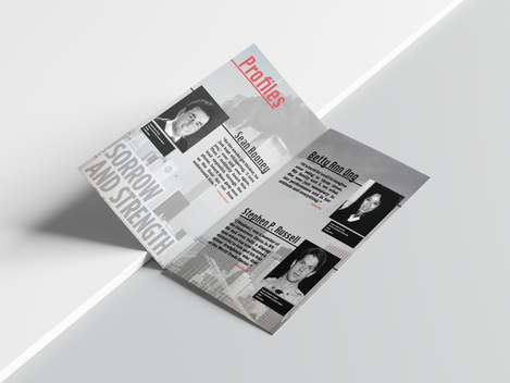 The "In Memoriam" exhibition at the 9/11 Memorial & Museum honors the lives lost during the tragic event of September 11, 2001. To support this deeply moving exhibition, I chose to design a commemorative pamphlet that guides visitors through the space while providing essential historical context and humanizing details about the victims for my Preparation of Art for Print class.